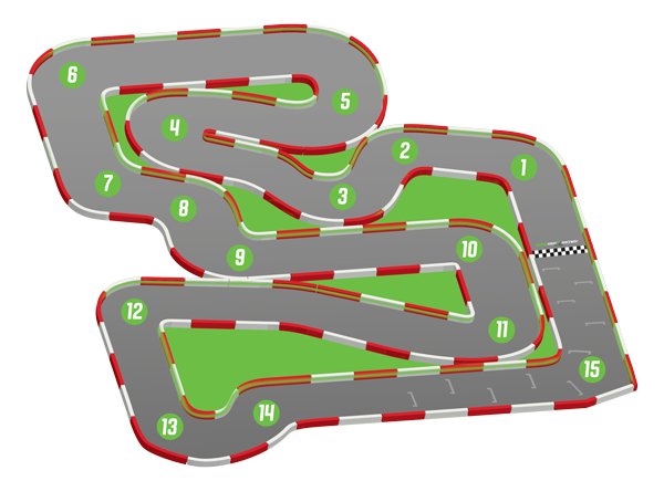 Choose your line carefully for this one. If you come too wide, you’ll lose time, come too tight and you’ll end up in the opposite barrier. Getting this corner right will determine where your entry for turn 6 will be. Remember – brake in a straight line before corners and accelerate out of corners after you’ve hit the apex.